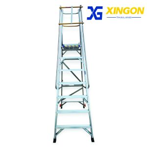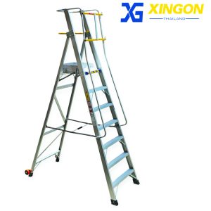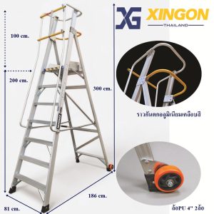 XG-152A7 บันไดอลูมิเนียมทรงเอติดล้อ 7ฟุต มีราวจับและราวกันตก