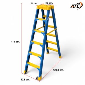 บันไดไฟเบอร์กลาสทั้งตัวทรงเอขึ้นลง2ทางติดล้อ6ฟุต ATC-206FG