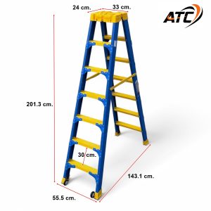 บันไดไฟเบอร์กลาสทั้งตัวทรงเอขึ้นลง2ทางติดล้อ7ฟุต ATC-207FG