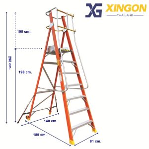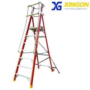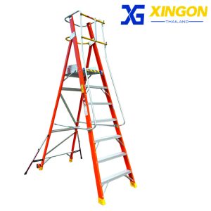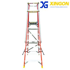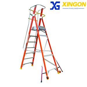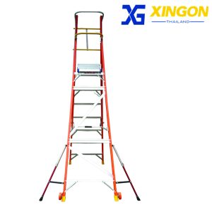 บันไดไฟเบอร์กลาสแพลตฟอร์มติดล้อ7ฟุตมีราวจับและกันตก+ขาค้ำยันXG-152F7