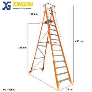 บันไดไฟเบอร์กลาสแพลตฟอรม์ติดล้อ12ฟุตมีราวจับและกันตก+ขาค้ำยันXG-152F12
