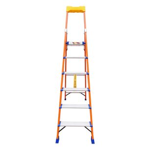 บันไดไฟเบอร์กลาสทรงเอพื้นยืนมีถาดวางเครื่องมือ 6ฟุต (5+1) ขั้น สามารถรับน้ำหนักได้150 กิโลกรัม บันไดทรงเอไฟเบอร์กลาส4ขั้นเป็นบันไดสำหรับช่างที่มีคุณสมมบัติป้องกันไฟดูด ช่วยต้านกระแสไฟฟ้าได้35 Kv