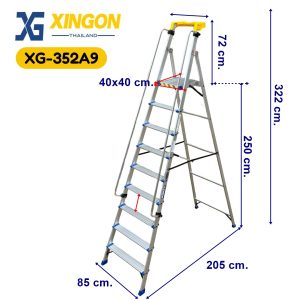 (สินค้าใหม่)บันไดแพลตฟอร์มอลูมิเนียมมีราวจับจัมโบ้9ฟุต XG-352A9