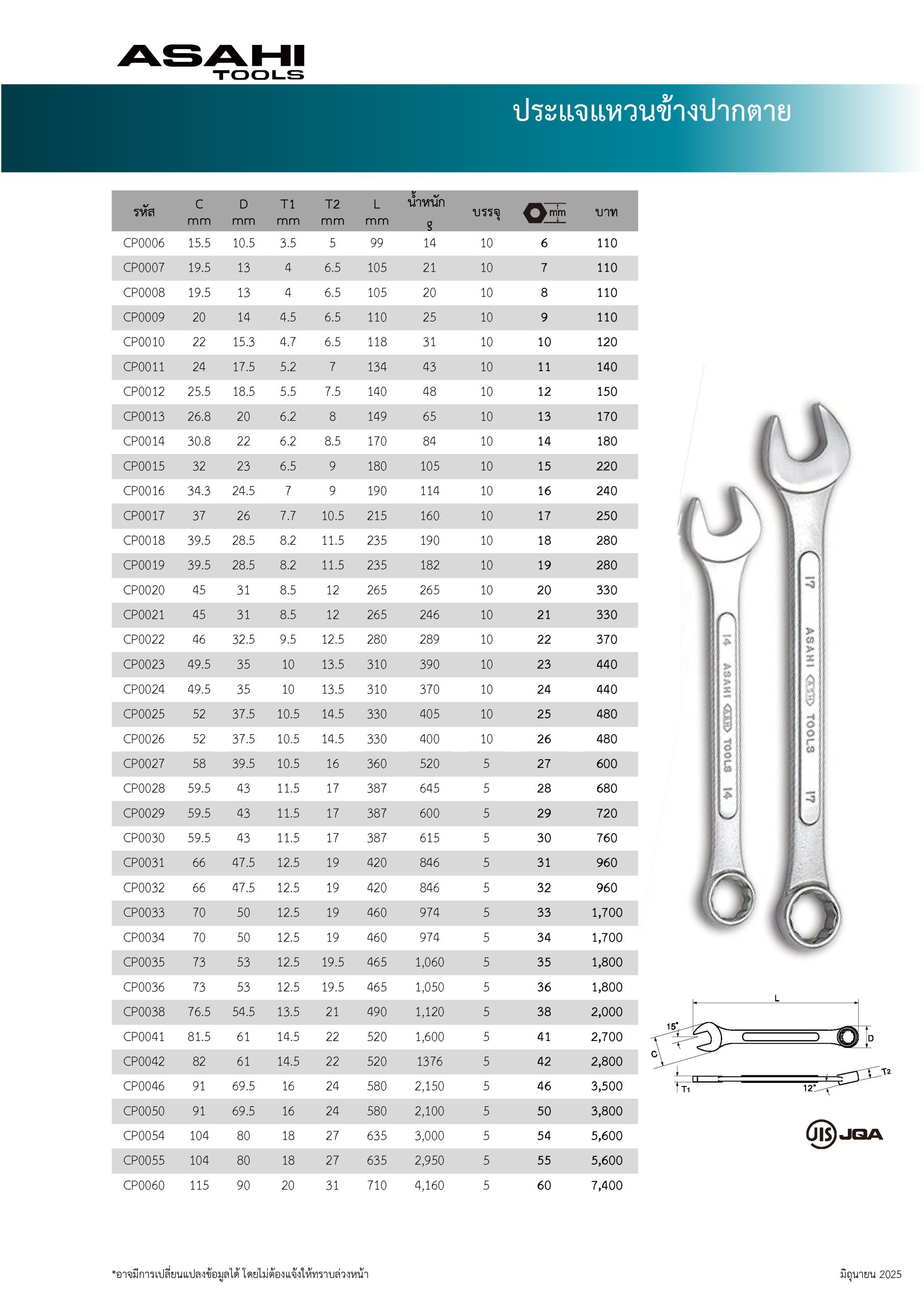 ประแจแหวนข้างปากตาย ASAHI CP0006-CP0060