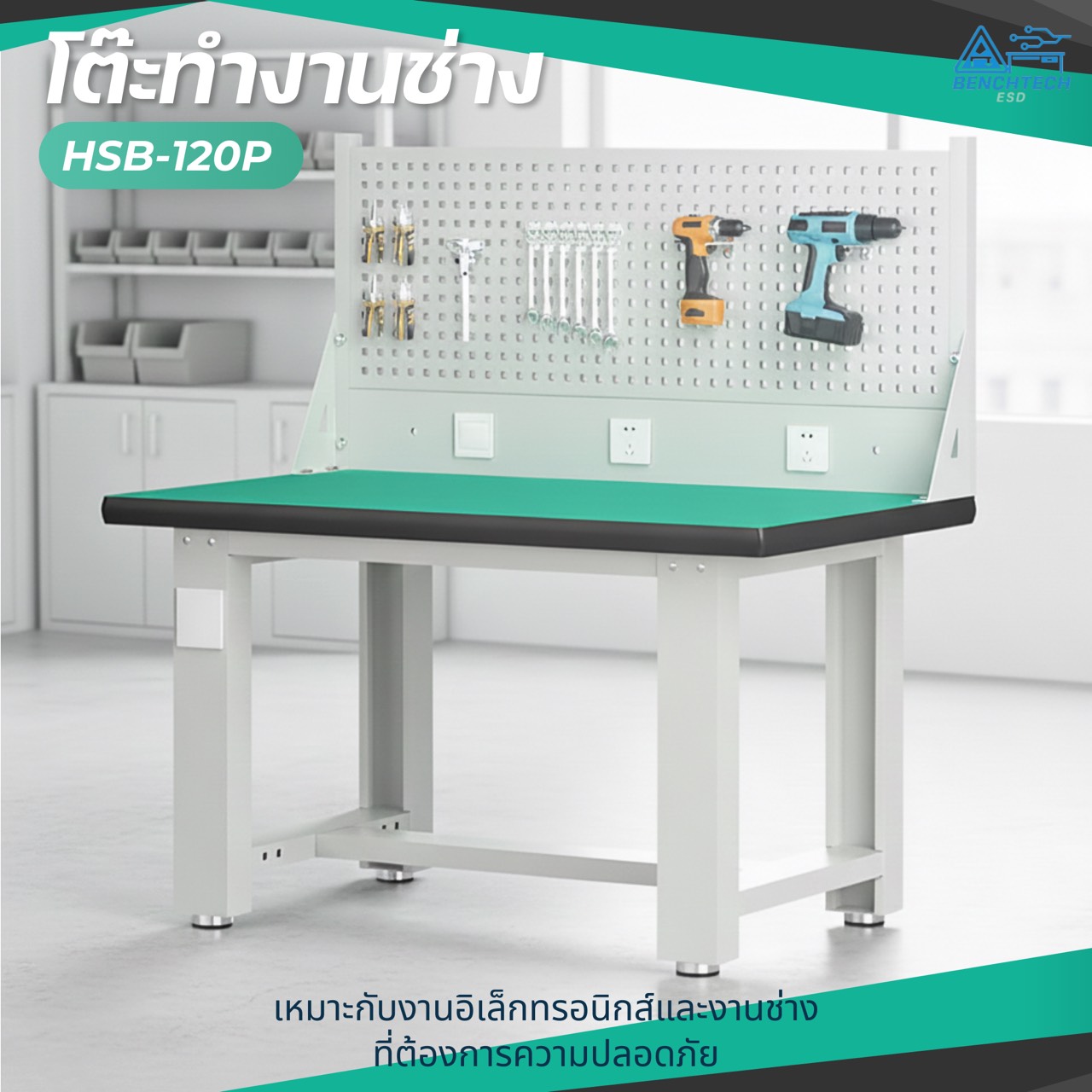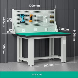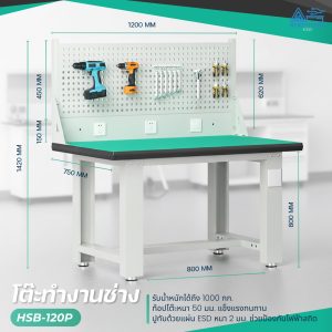โต๊ะทำงานช่างESDมีแผงแขวนเครื่องมือ 120x75x80 CM.รับน้ำหนักได้1000กก. HSB-120P