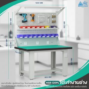 โต๊ะทำงานช่างESDมีแผงแขวนเครื่องมือ 120x75x80 CM.รับน้ำหนักได้1000กก. HSB-120PL