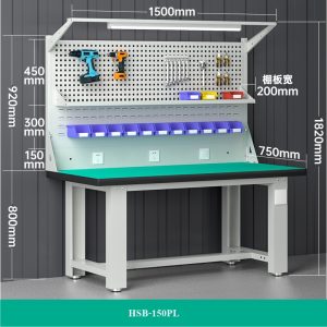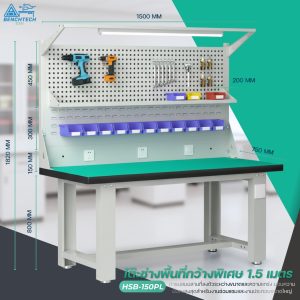 โต๊ะทำงานช่างESDมีแผงแขวนเครื่องมือ 150x75x80 CM.รับน้ำหนักได้1000กก. HSB-150PL