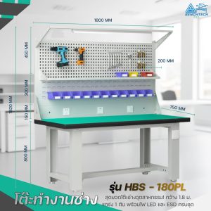 โต๊ะทำงานช่างESDมีแผงแขวนเครื่องมือ 180x75x80 CM.รับน้ำหนักได้1000กก. HSB-180PL